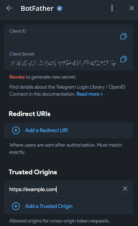 认证接口 - OpenID Connect for Telegram